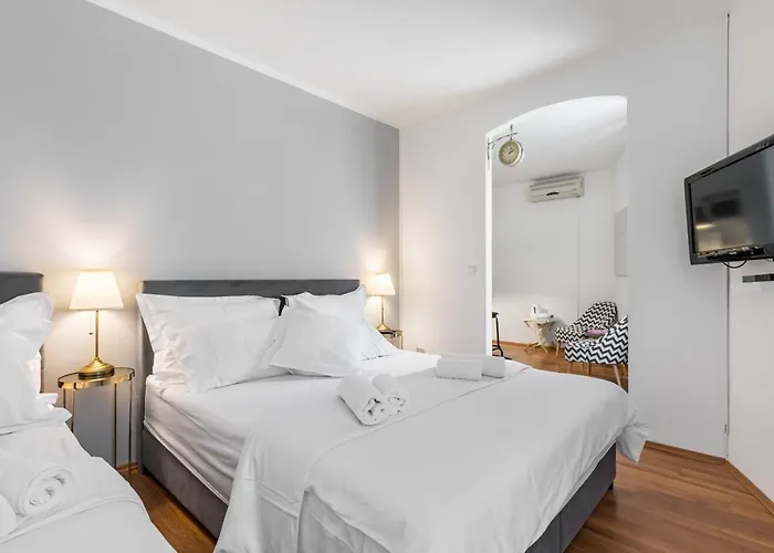 De accommodatie heeft een ingerichte kitchenette die volledig met een waterkoker, een koelkast en een broodrooster uitgerust is. Met koffie- en theevoorzieningen zorgt het appartement ervoor dat gasten een comfortabel en moeiteloos verblijf hebben. De accommodatie is op een paar meter van Zinfandel Food & Wine bar met een aanbod van Europese keuken. 1-slaapkamer Chic Studio By Diocletian'S Palace - Historic Comfort is op ongeveer 150 meter van de dichtstbijzijnde bushalte, HNK - Izlaz.